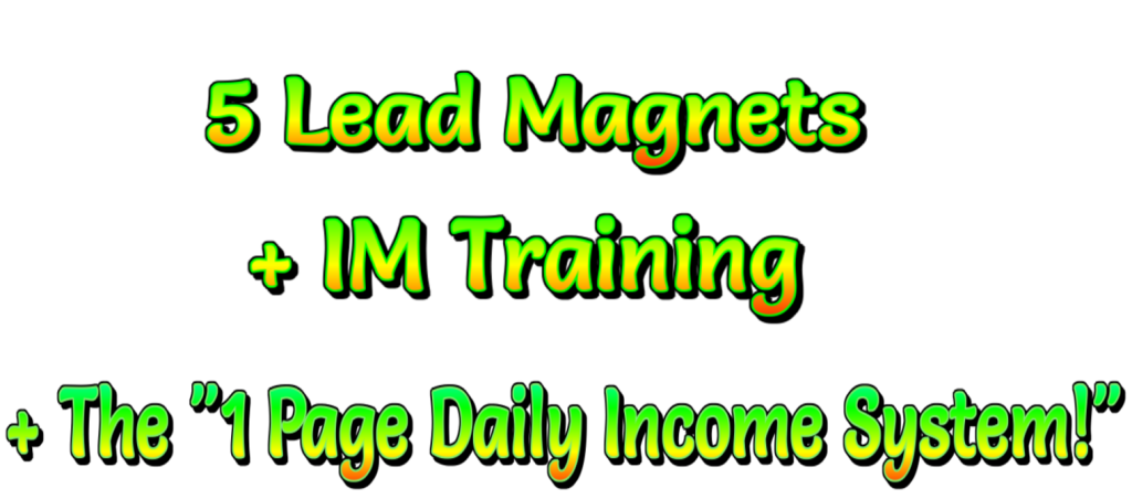 But …you receive all 5 professionally desgined Lead Magnets for one super low price. Plus the IM Training which includes the “1 Page Daily Income System!”