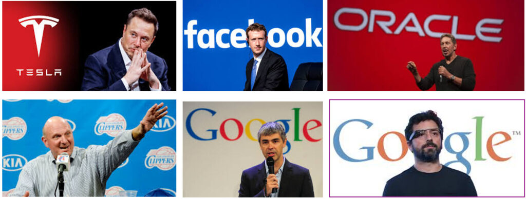 Elon Musk, Mark Zuckerberg, Larry Ellison, Steve Ballmer, Larry Page and Sergey Brin. These individuals consistently rank among the richest in the world.